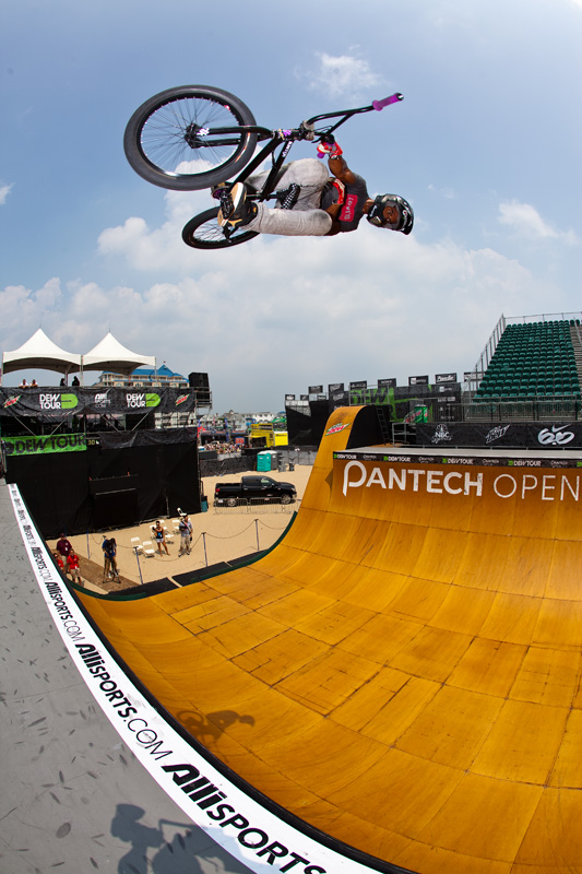 Division is absolutely psyched for our friend and longtime rider Mykel Larrin qualifying for the Dew Tour Vert Series.  He had been working hard all winter long at Woodward and came through with flying colors throwing new tricks on the biggest ramp of them all.  All pictures stolen from Fat Tony at BMXonline.com