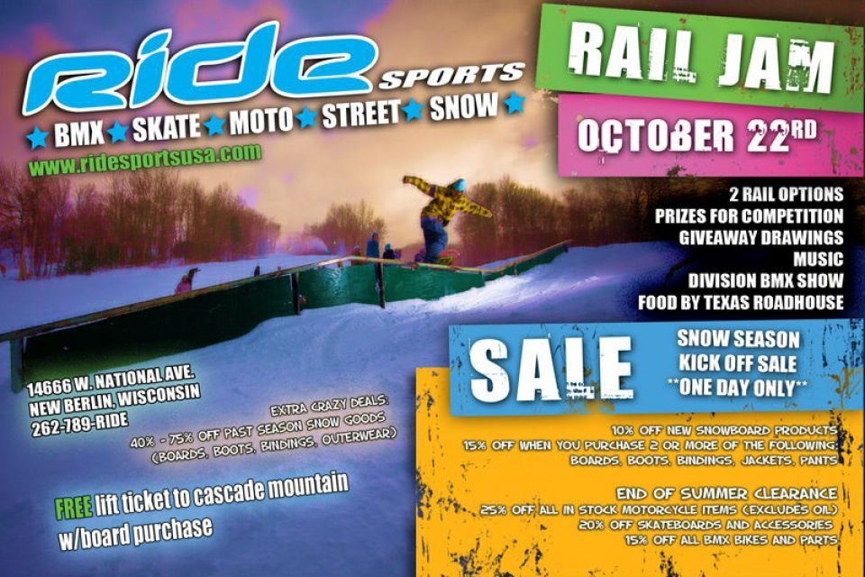 Our friends at Ride Sports are having their annual rail jam. It’s a great time but with the weather being so cold, Division will not be performing. Still head out and check out the Jibs at this years Sale!