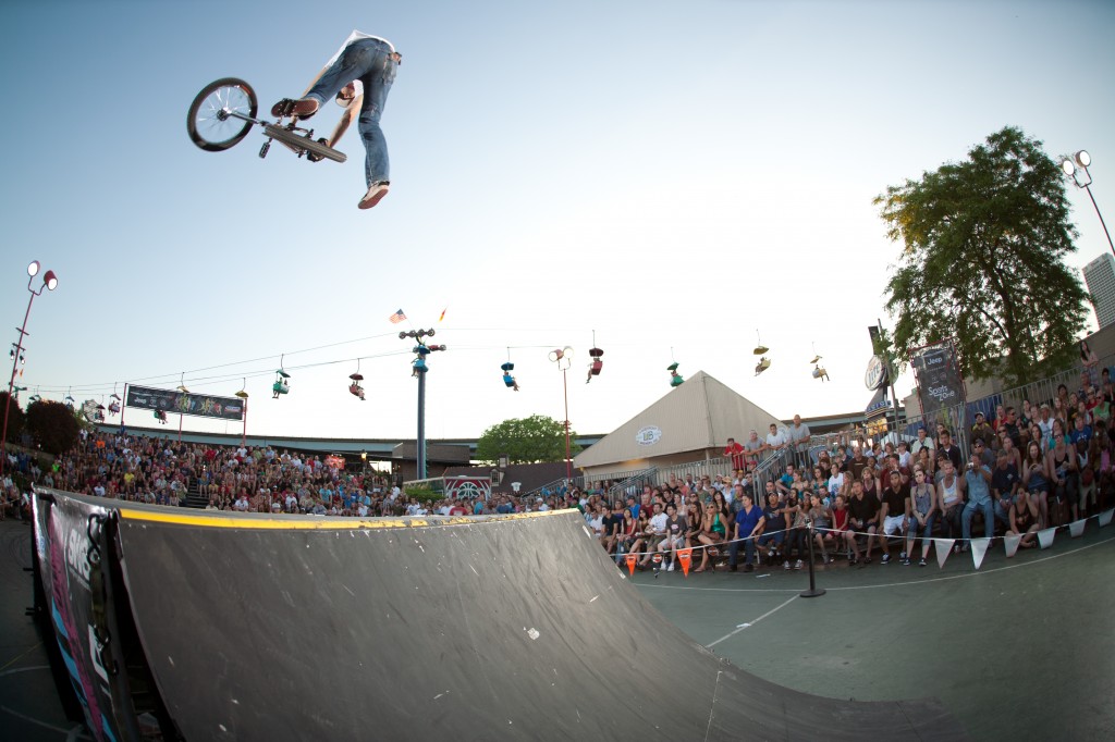 All sorts of new things are happening with Division BMX these days and before we get too ahead of ourselves, lets take a moment to enjoy how much fun this summer has been. The next few days will bring new websites, new logos and new designs but let us not forget that pure BMX is what got us here. Above is one the best pictures from this past Summerfest in Milwaukee WI. This is Brandon Schill with a few hundred people looking on. Good style, amazing lighting, and authentic BMX! All photos Greg Dickson