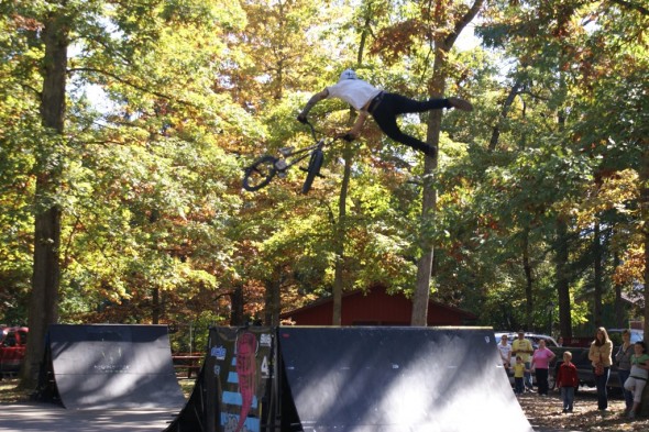 Nose pick tailwhip by Wade with amazing color behind him. The festival was called the Forrest Fest and for good reason. Driving through the mountains of West Virginia is something I will never forget and this picture pretty much sums up the entire weekend. Awesome BMX with positive people and perfect backdrops!